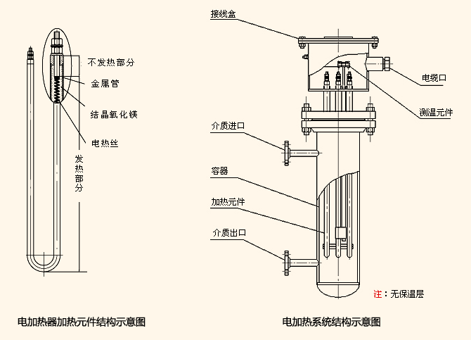 本產品是在無縫金屬管內裝入電熱絲,空隙部分緊密填滿良好導熱性和絕緣性的結晶氧化鎂粉而成。